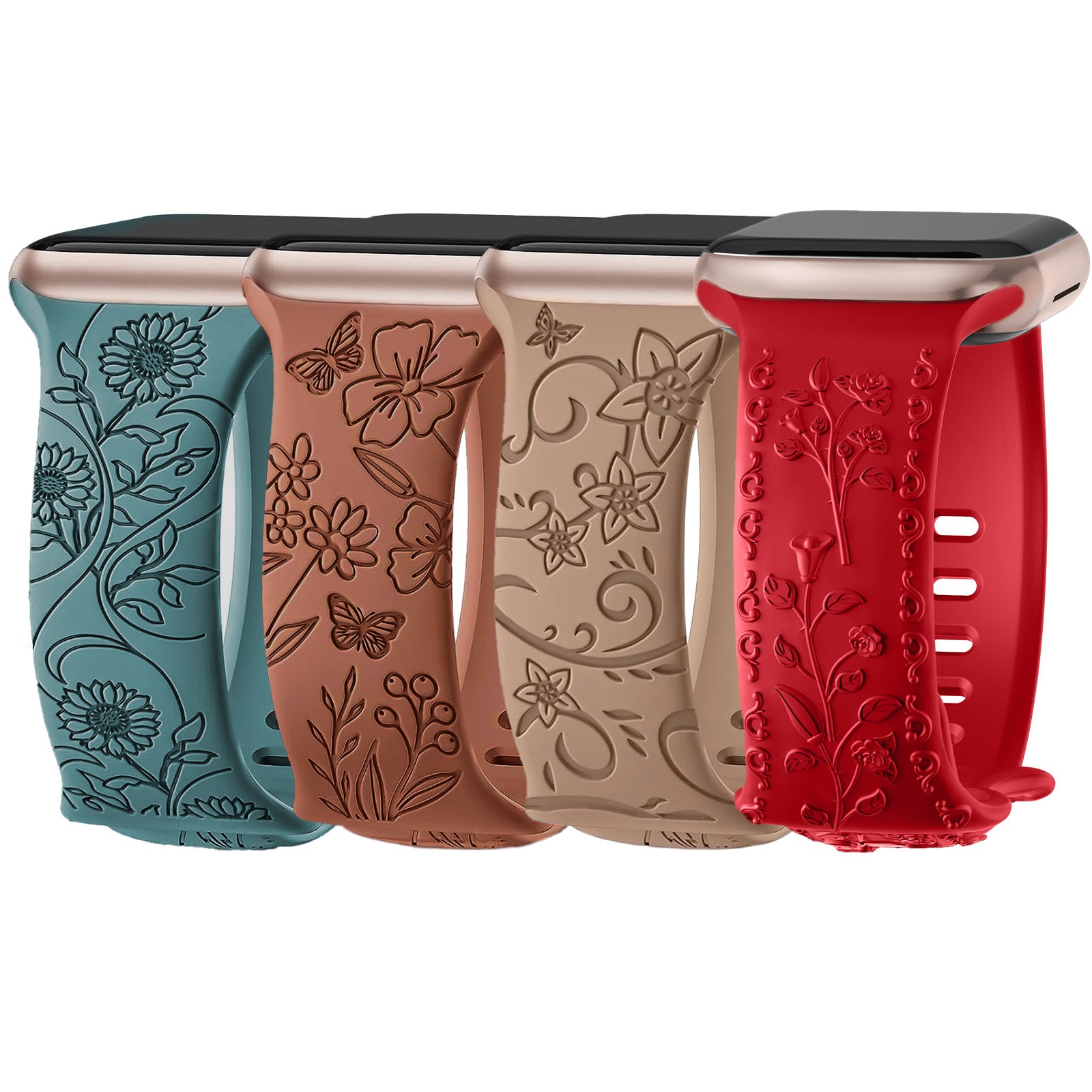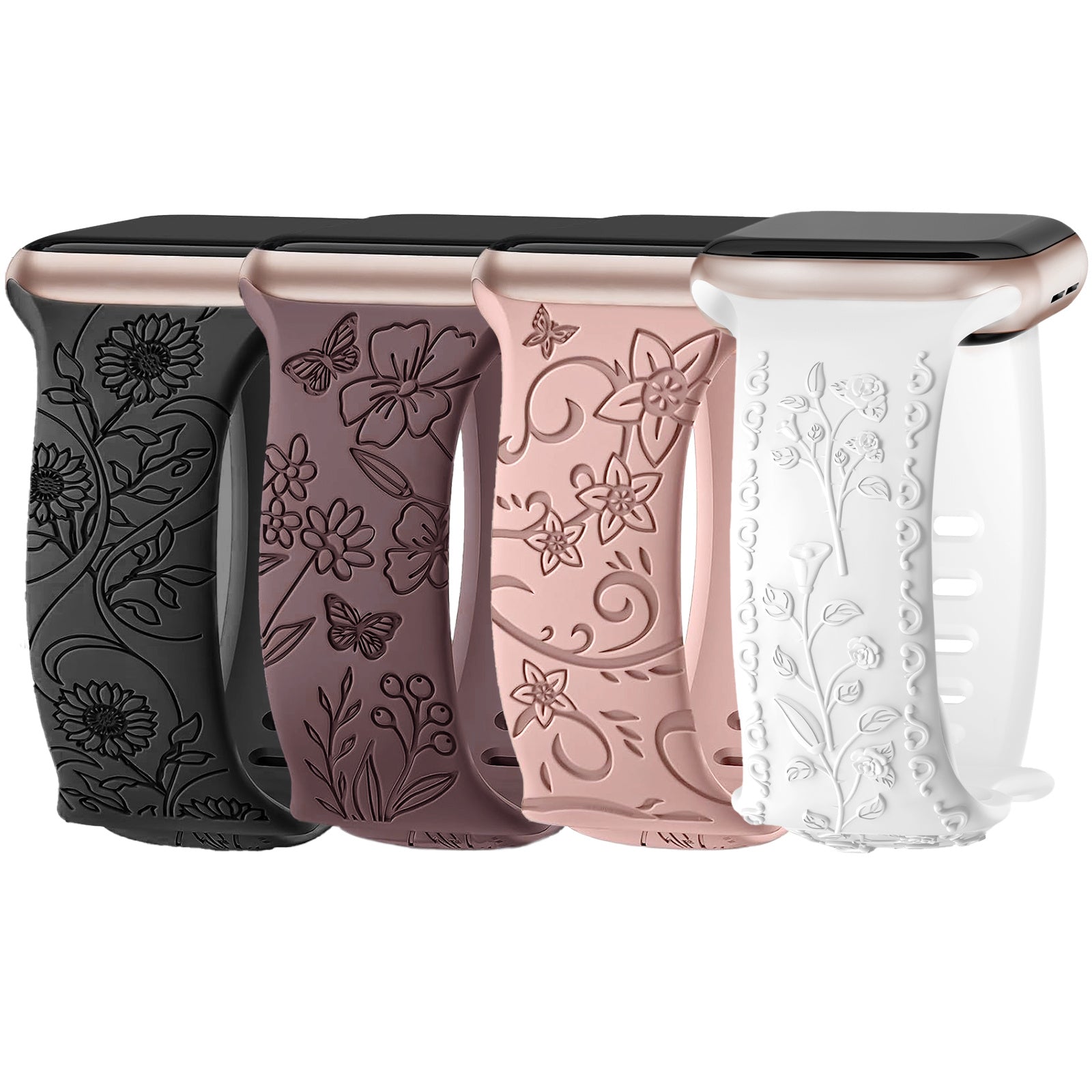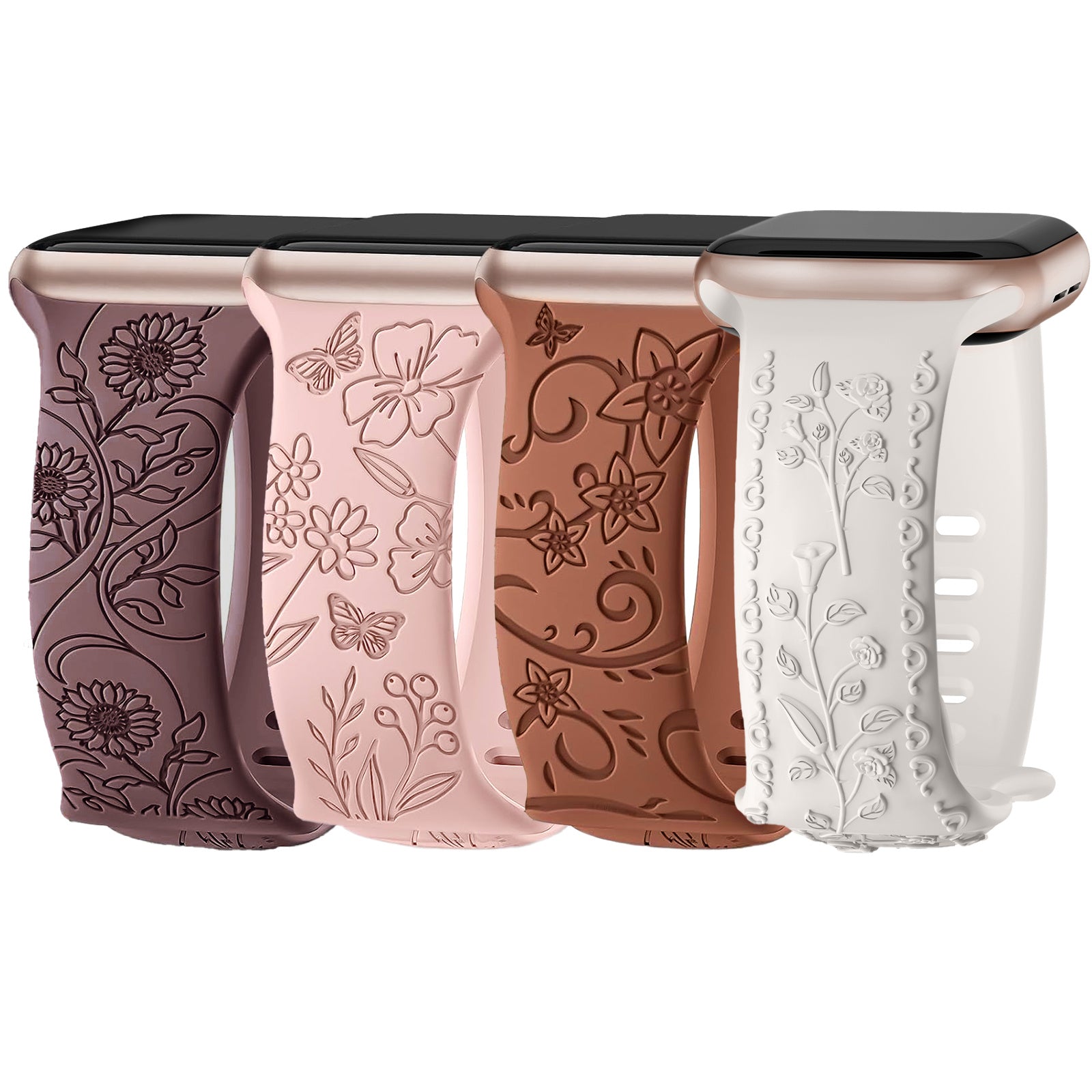 Dieses 4er-Pack floraler Silikon-Armbänder ist der feminine Upgrade für Ihre Apple Watch – weich, wasserdicht, hautfreundlich und kompatibel mit allen Modellen 42/44/45/49 mm, Serie 4–10, SE1-2, Ultra 1-2). Die zarten Blumenmuster in Pastell & Naturfarben machen jedes Outfit zum Hingucker – von Sport bis Date!