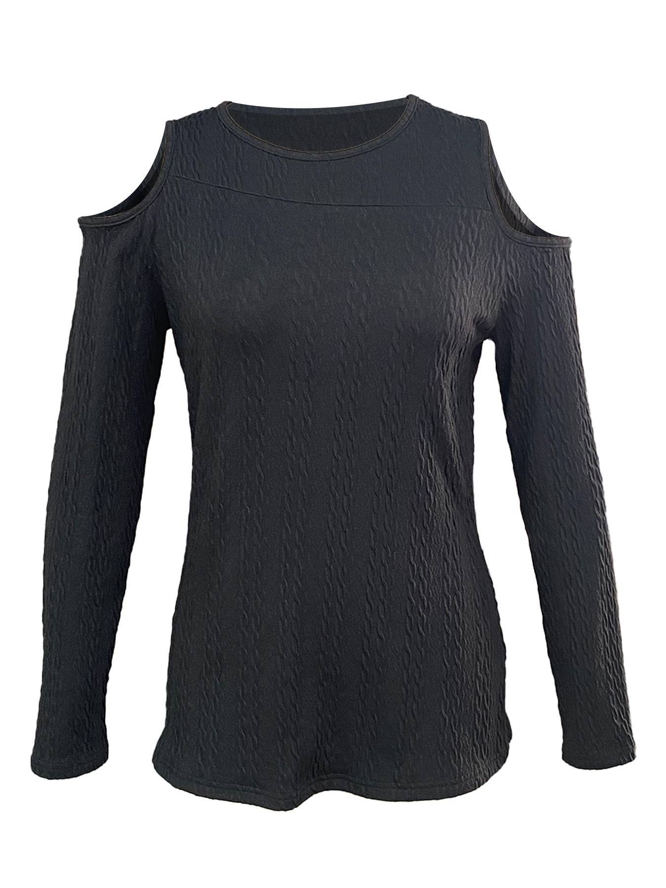 Shoulder-Free Cable Sweater – Schwarzer Zopfmuster Pullover für Damen