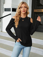 Dieses tiefschwarze Langarm-Top aus weichem Zopfstrick verbindet romantische Kabelmuster mit einem verführerischen Cold-Shoulder-Design – Schultern frei, aber warm durch lange Ärmel und Rundhals. Ein Statement-Piece für 2025-Trends: Texturierte Cable Knits mit Off-Shoulder-Details für edgy, feminine Looks – perfekt für Dates, Partys oder Layering im Winter.