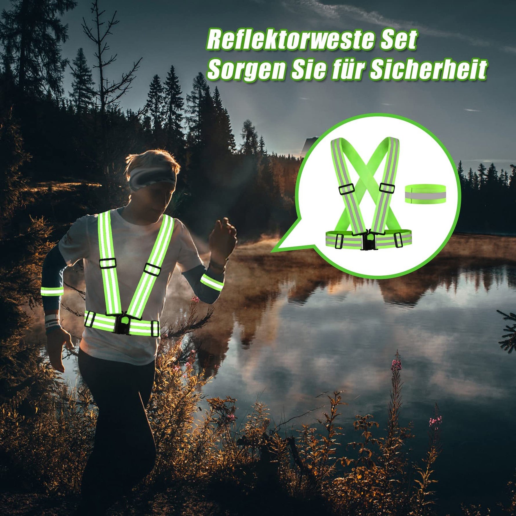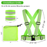 Dieses komplette Reflektor-Set enthält 2 Warnwesten, 4 Reflektor-Armbänder und 1 praktische Aufbewahrungstasche mit Kordelzug – 360° Sichtbarkeit bei Tag & Nacht. Perfekt für Fahrradfahrer, Jogger, Schulkinder, Hundebesitzer oder Berufstätige – hohe Reflektivität (EN ISO 20471) macht Sie aus 150 m sichtbar.