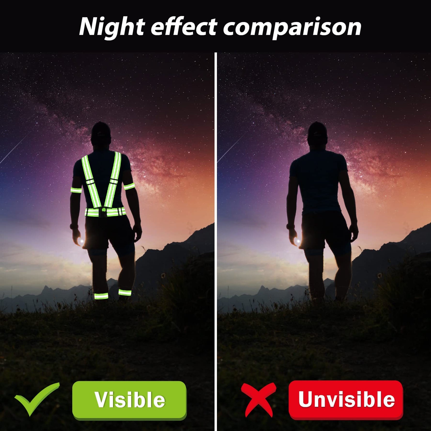 - Hohe Sichtbarkeit: Reflektierende Streifen – leuchten bei Scheinwerferlicht.
