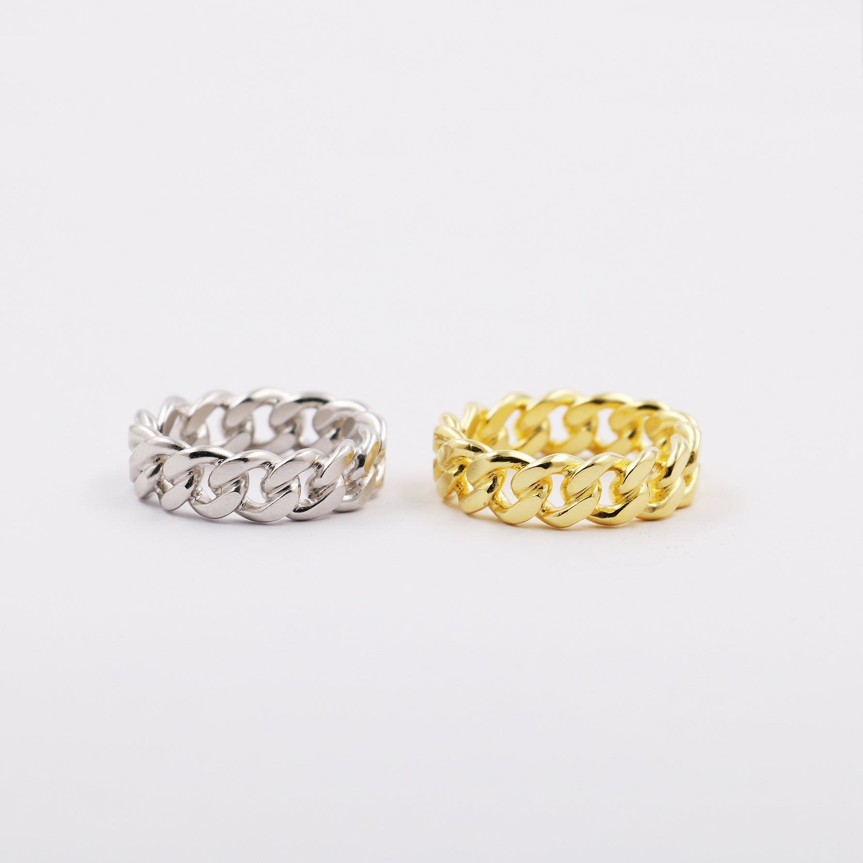 Verleihe deinen Händen einen Hauch von Eleganz mit unserem goldenen Kettenring aus hochwertigem Silber. Dieser modische Ring kombiniert zeitlose Einfachheit mit einem glänzenden Gold-Überzug – perfekt für jeden Anlass. Dank hypoallergener Verarbeitung ist er auch für empfindliche Haut geeignet.