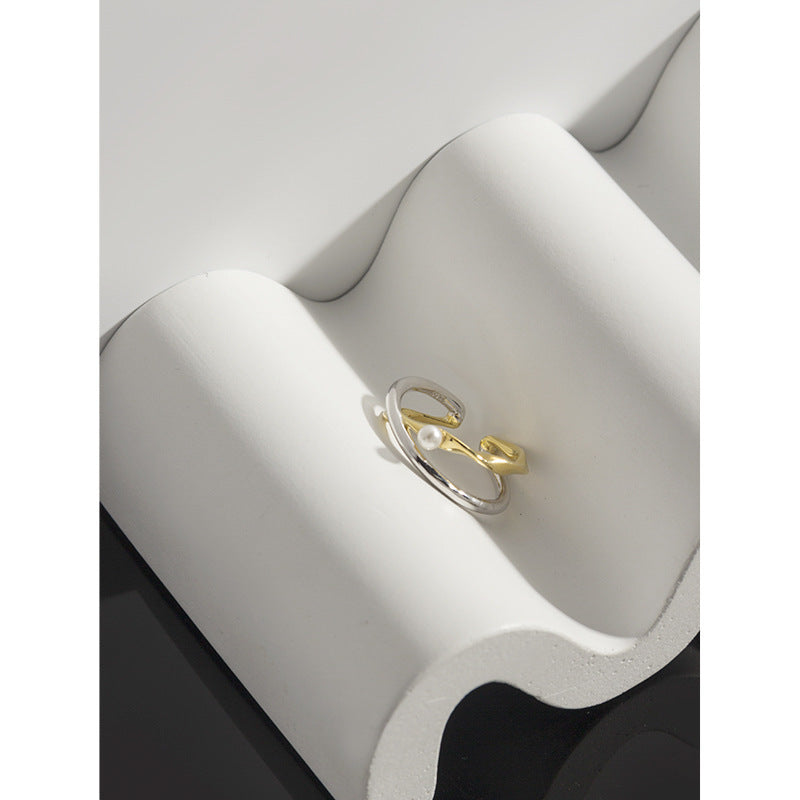 Verleihe deinem Stil Glanz mit unserem Zweifarbiger Perlen-Ring für Damen! Gefertigt aus hochwertigem Silber mit galvanisierter Zweifarb-Optik, besticht dieser verstellbare Ring durch sein geometrisches Design mit Perlenakzenten. Perfekt für den Alltag, besondere Anlässe oder als Geschenk. Hypoallergen und langlebig für einen stilvollen Auftritt.