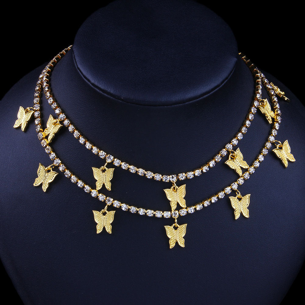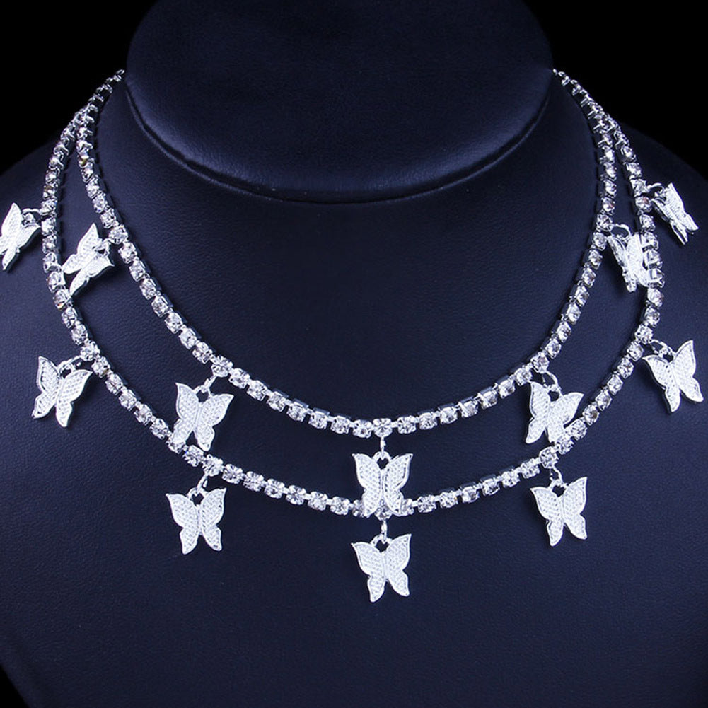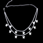 Fliege mit Stil mit unserer Doppel Schmetterlings Halskette für Damen! Diese mehrschichtige Kette aus funkelndem Strass mit Schmetterlings-Motiven (30+20 cm) vereint Boho-Chic mit Eleganz. Perfekt für den Alltag oder als Geschenk für einen besonderen Menschen. Die leichte Bohrkette liegt angenehm auf der Haut und ist ideal für Layering-Looks oder solo getragen.